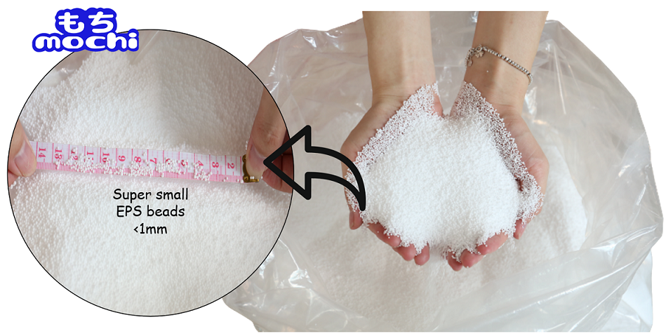 Hạt xốp siêu nhỏ kích thước 0.5~1mm. Khác với các loại ghế lười trên thị trường hiện nay với thường sử dụng loại hạt xốp to 3-5mm, khi ngồi không được êm ái, hạt xốp nhanh biến dạng. Cảm giác khi ngồi hoặc nằm có tiếng lạo xạo làm giảm cảm giác thoải mái. Ghế lười Mochi mochi sử dụng hạt xốp nhỏ nhất trên thị trường hiện, sự khác biệt nhất chính là độ bền, rất ít bị biến dạng, nâng đỡ cơ thể trên mọi góc độ. Cảm giác mềm, mịn, nhẹ.