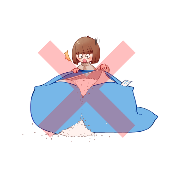 Một số người hay tò mò muốn xem phần hạt xốp bên trong ghế như thế nào nên sẽ mở ra xem. Nhưng ghế lười không giống với các loại gối thông thường làm từ bông, nếu bạn đột ngột mở khóa phần túi chứa xốp, hàng nghìn hạt xốp sẽ nhanh chóng bay ra bởi chúng rất nhẹ, lại còn tĩnh điện nên rất dễ bám vào các đồ dùng trong nhà. Tuyệt đối không mở túi chứa xốp ra khi không cần thiết.